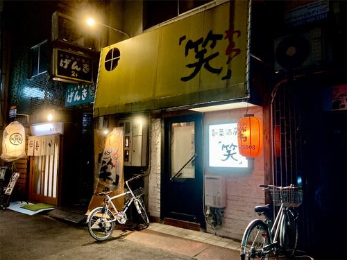 「笑」 ずっと骨付鳥のお店なのかと思ってましたが、どちらかと言うと鳥料理なお店 その内容はSNSで知り、どうしても鳥タタキが食べて見たくて1人でノコノコ訪問。 メヌーを眺めていると“親鳥”を使った餃子や焼きそばなど鶏肉マニヤにはたまりませんな。 そ…
